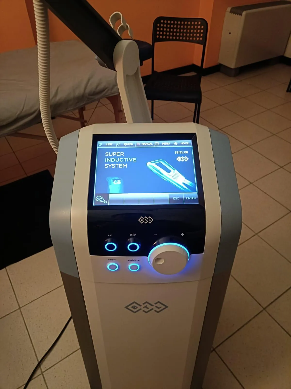 – Sistema Super Induttivo sfrutta campi elettromagnetici ad alta intensità con 54 programmi specifici, lavorando in profondità su tessuti muscolari, articolari e nervosi, sia in fase acuta che cronica.